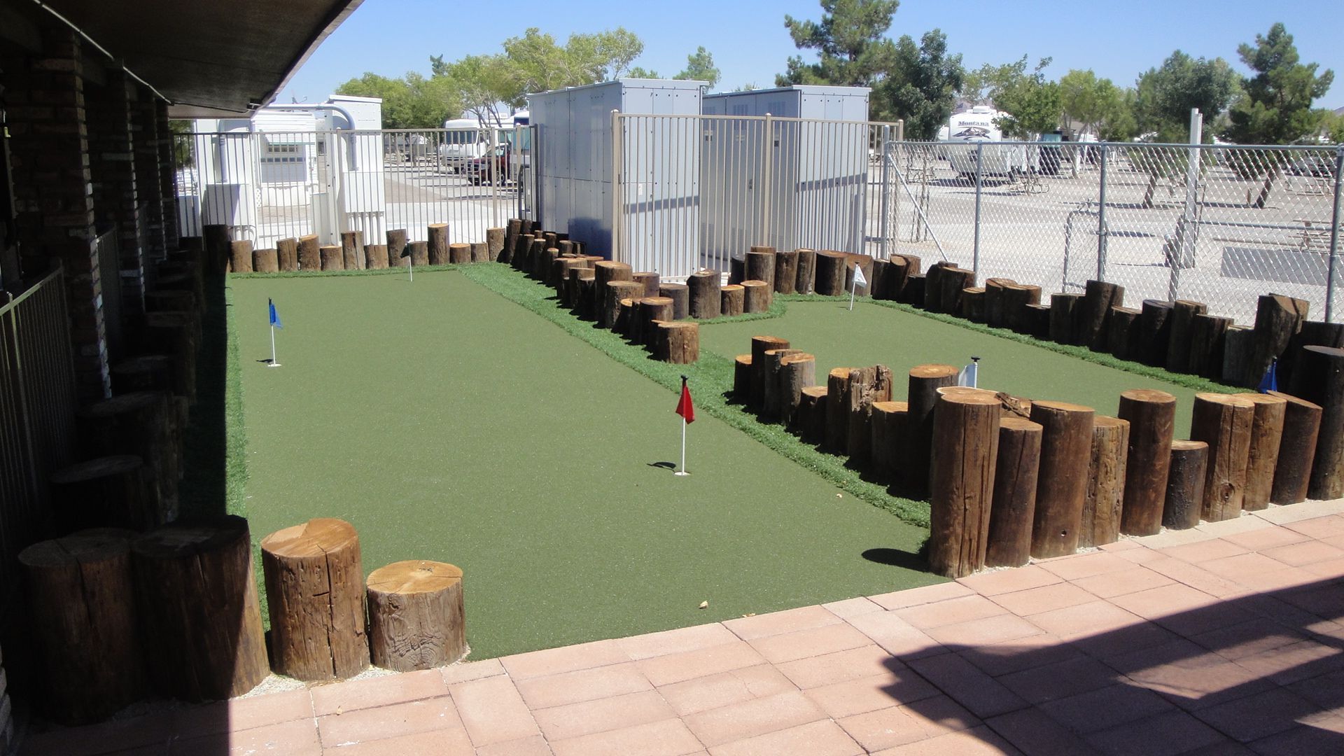 Traveling with your golf clubs? Keep your golf game tuned up at the Hitchin’ Post’s putting green and driving range. The putting green is 750 square feet of surface with 7 holes. The hitting cage is 15 feet wide by 35 feet long and 20 feet tall—plenty of room to see how well you are hitting the golf ball.