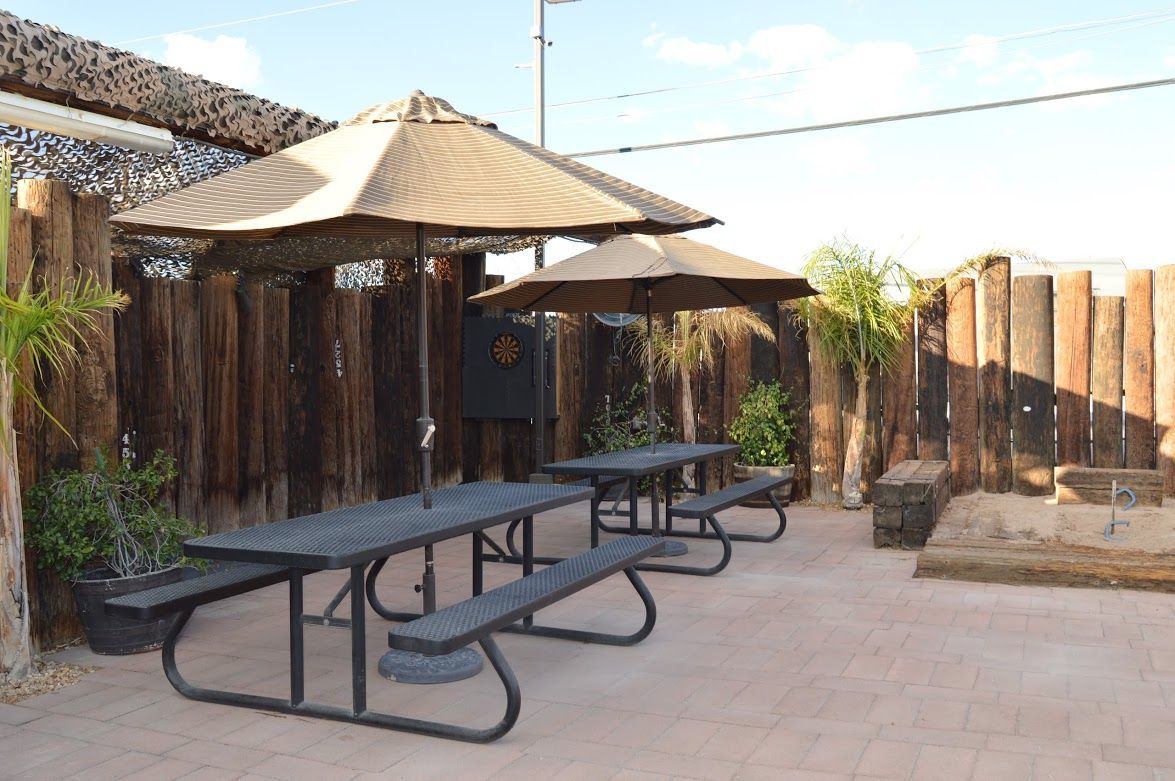 The Hitchin’ Post Saloon and Steakhouse, located at 3640 North Las Vegas Blvd., offers ice-cold beverages 24/7, where you can enjoy our full sports package on nine flat-screen TVs. Enjoy a full menu of delicious food from 10am to 8pm, seven days a week. To enjoy our beautiful beer garden located behind the bar, which features comfy lounge chairs, horseshoe pits, and dartboards, simply walk directly out of the bar's back door.